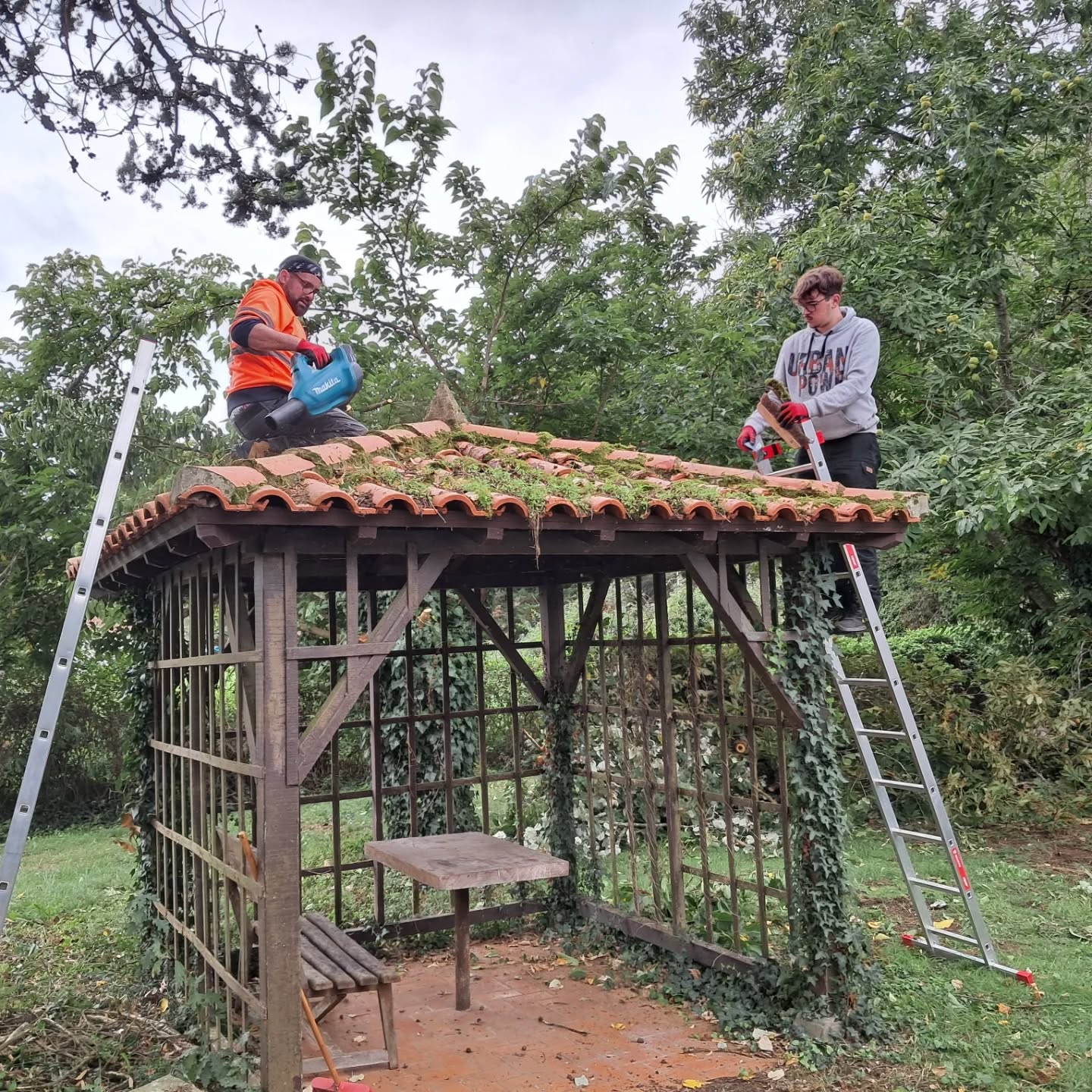 Remplacement de tuiles endommagées et reprise des zones fragilisées.